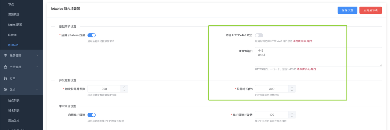 http+443端口攻击的话,就开启这个开关,里面填写HTTPS端口